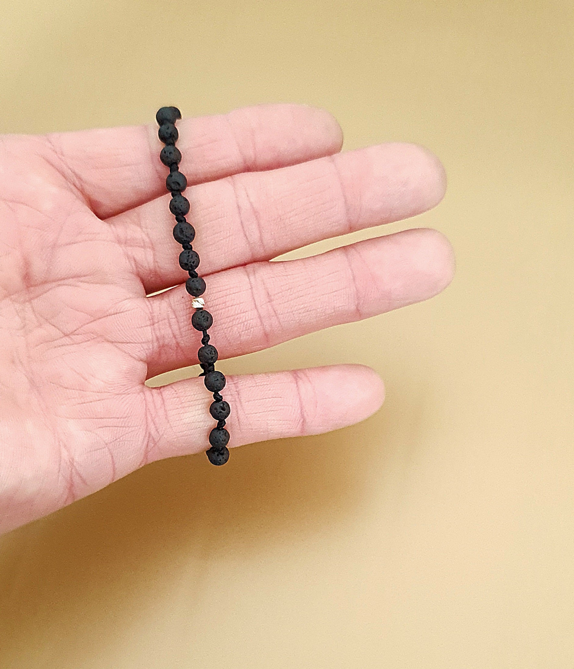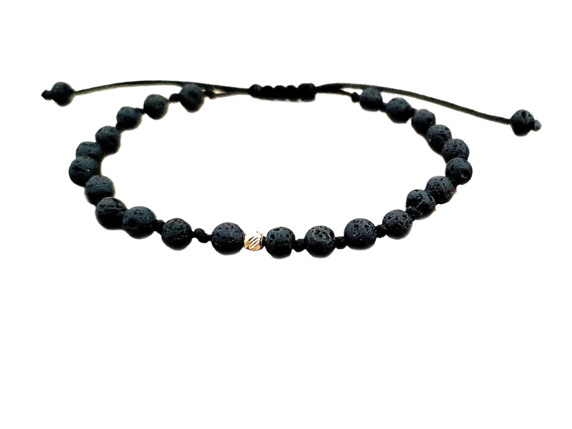 Apyrankės iš aukso karoliukų ir natūraliais lavos akmenukais