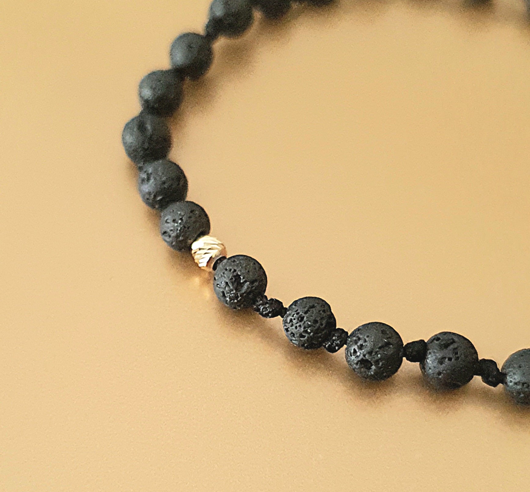 - Medžiaga: Lavos akmenukai ė.čmm ir auksiniai rutuliukai 4mm
