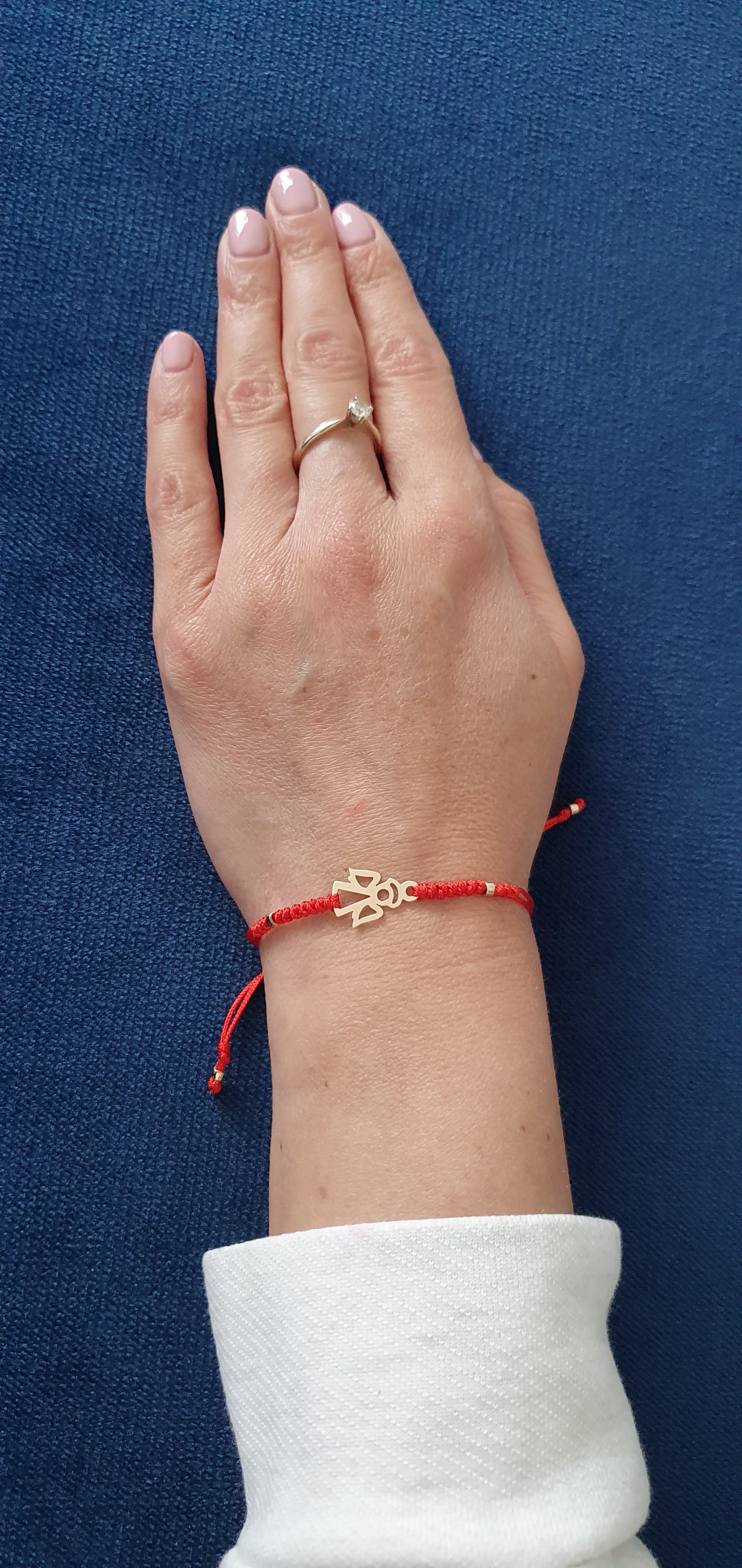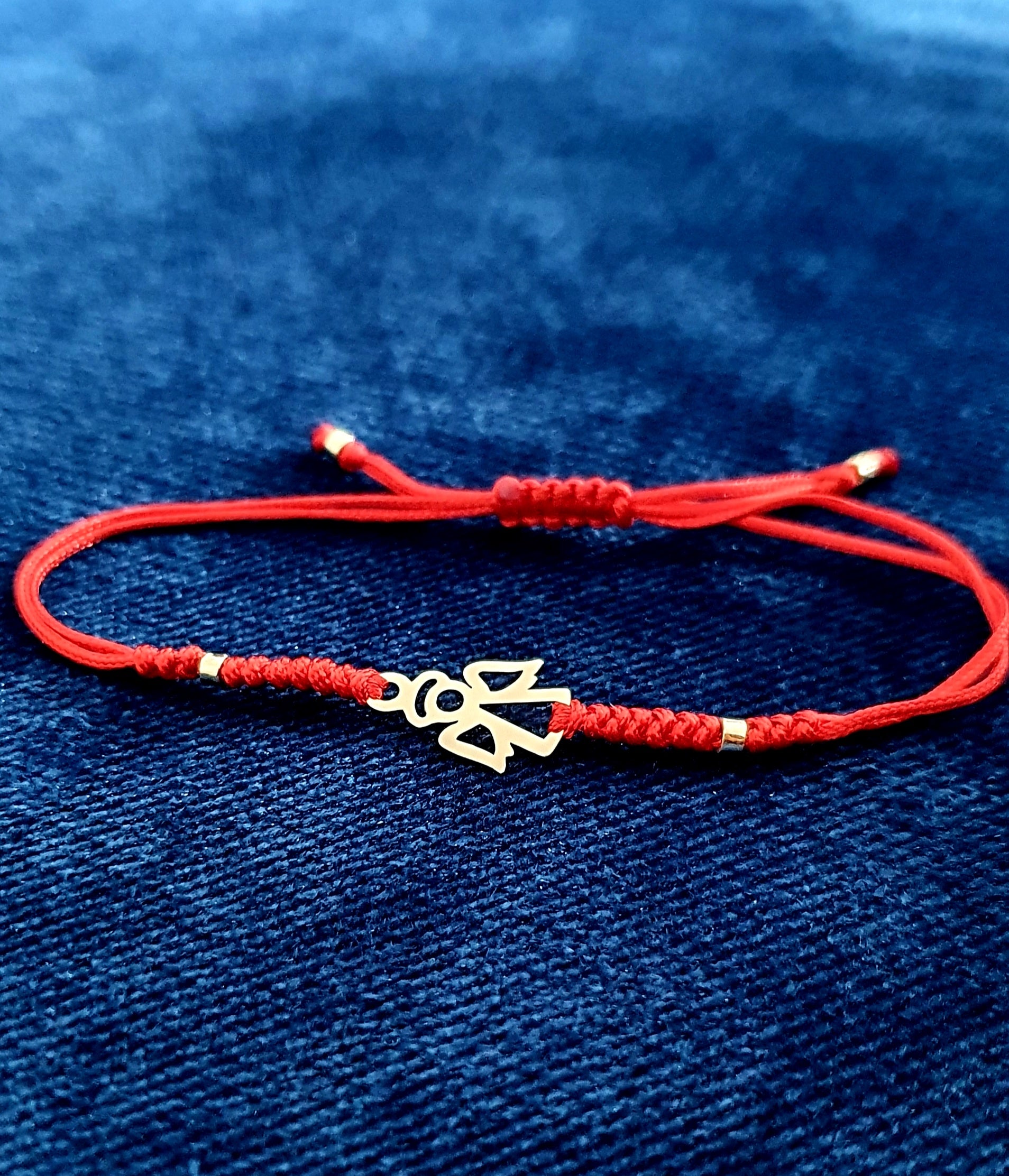 Ši raudono siūlo apyrankė su auksiniu angelu ne tik pridės spalvų jūsų aprangai, bet ir privers jus jaustis ypatingai.